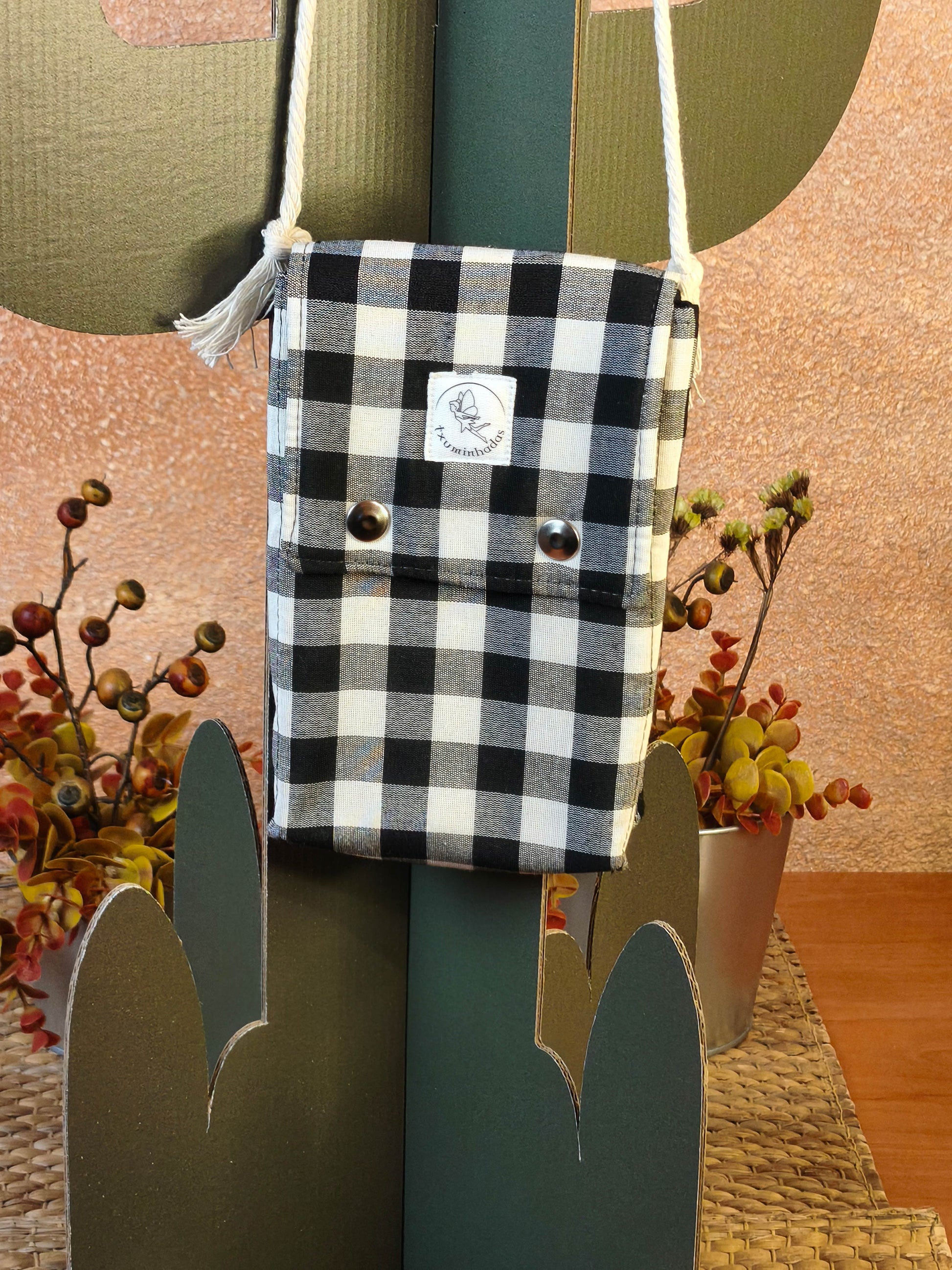 Ligero y práctico, es perfecto para paseos, recados o momentos en los que no necesitas un bolso grande. Su diseño sencillo y funcional permite llevarlo cómodamente, manteniendo siempre el estilo artesanal que caracteriza a txuminhadas.
